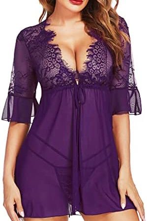 Avidlove Women Lingerie Lace Babydoll Strap Chemise Halter Teddy V Neck Mesh Nightgown