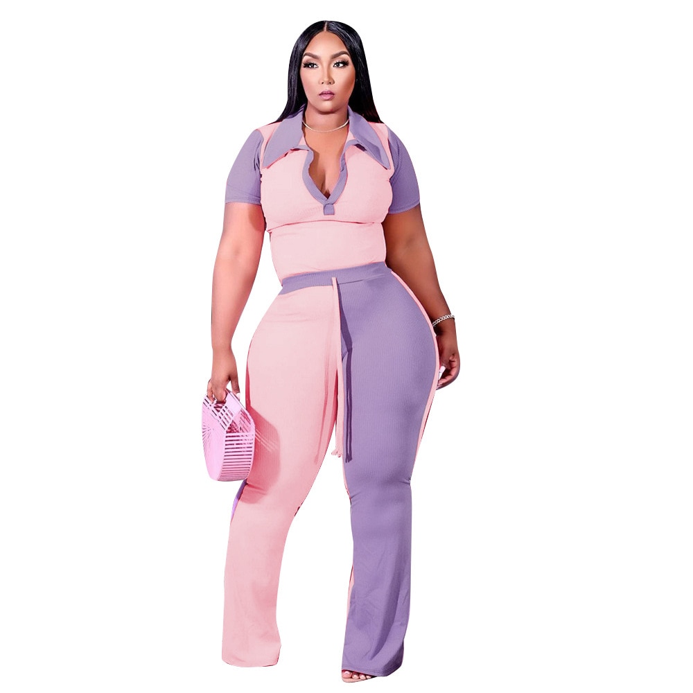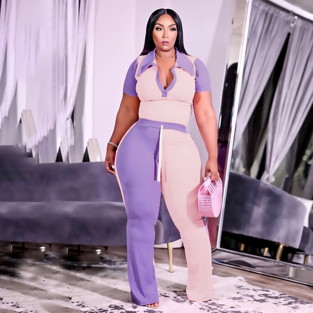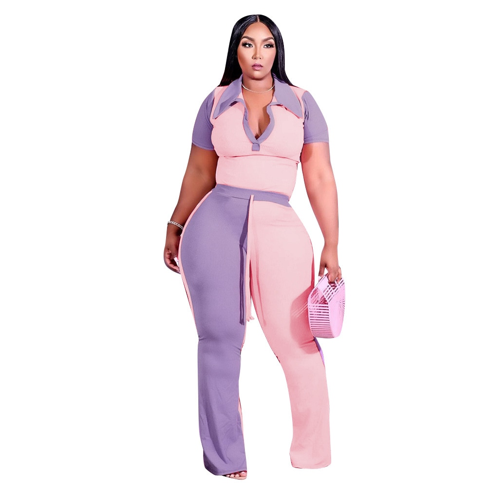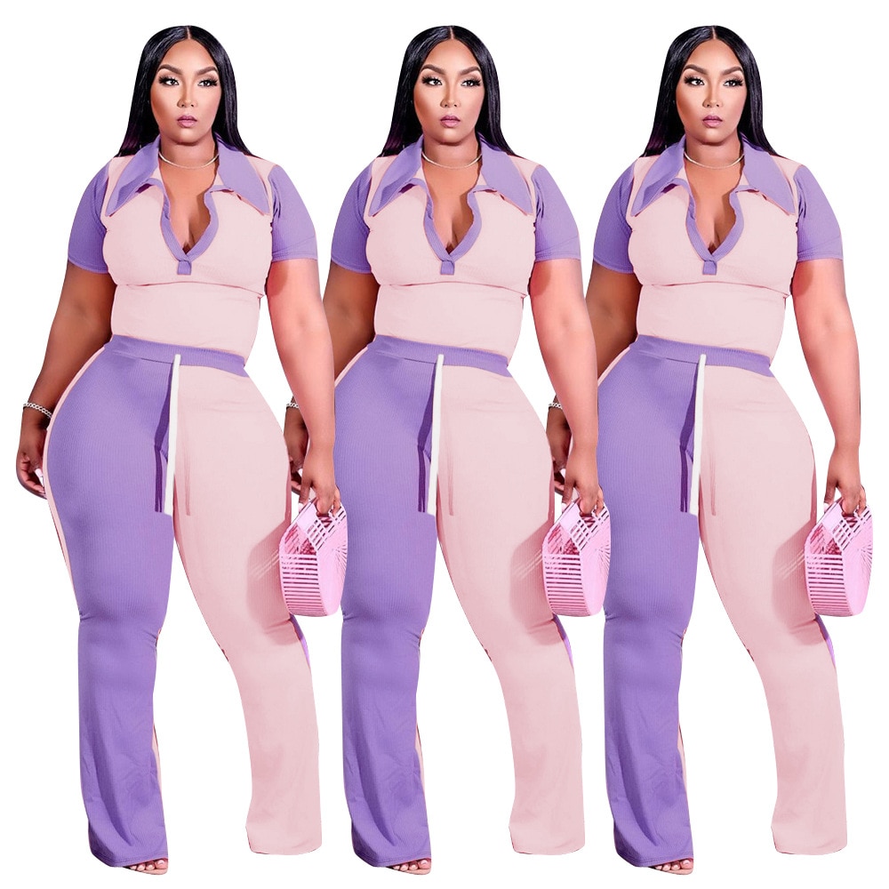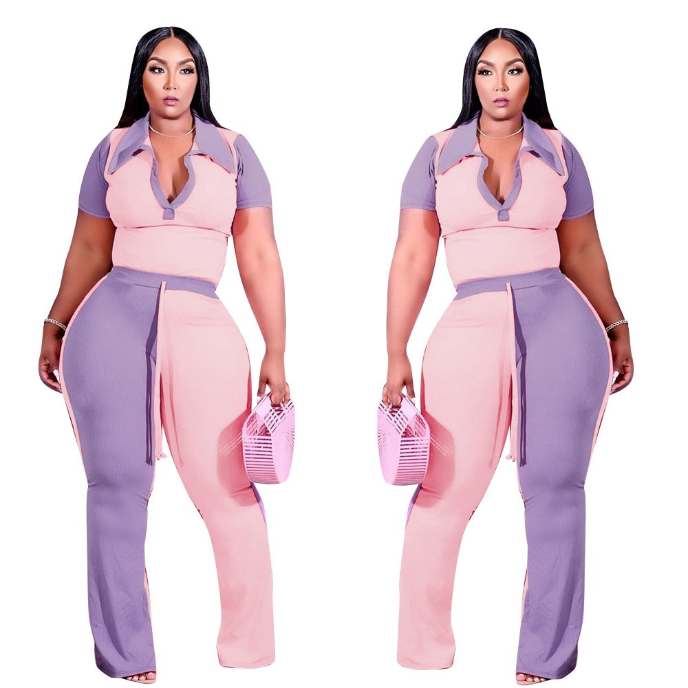 Autumn Style Plus Size Women Clothing Two Piece Set 4x Tracksuit Womens Pit Bar Patchwork Color Collar Wholesale Dropshipping