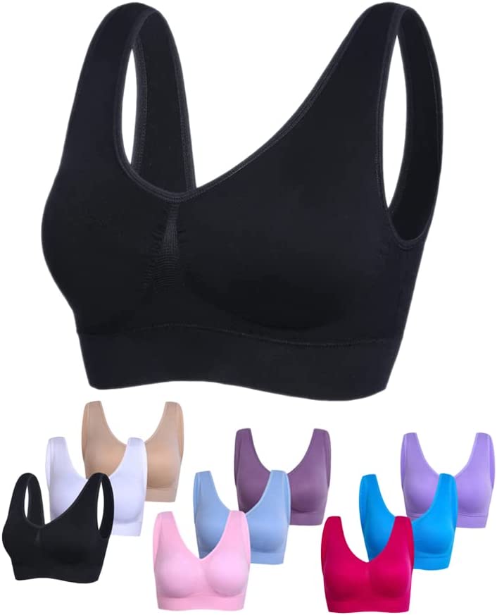 Stretchy Seamless Low-support Sports Bra: with added stretch, our seamless bra suits for small and plump chest, light sports such as yoga, gym, jogging, sleeping, working and daily wear.