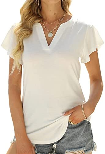 Features – Casual Short sleeve Top,Business Blouse Tops, Ruffle Sleeve Top, Split V Neck,Solid Color, Plain, Trendy and Elegant, So cute tops