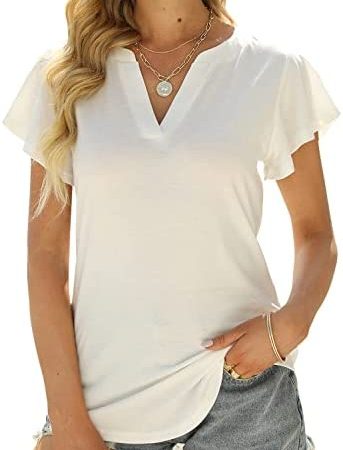 Womens Tops V Neck Ruffle Short Sleeve Tshirts Tunic Summer Business Casual Tops Blouses for Women
