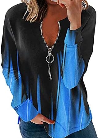 YRAETENM Womens Fall Long Sleeve T-Shirts Gradient Print Shirts Zipper V Neck Tunic Tops Comfy Soft Loose Fit Blouse