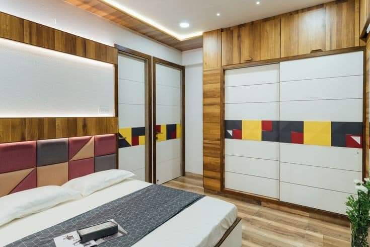 The core colors of the color palette for this design project were yellow and red. We used subtle shades of these colors and incorporated them uniquely throughout the home interiors in the living room, kitchen, and bedroom.