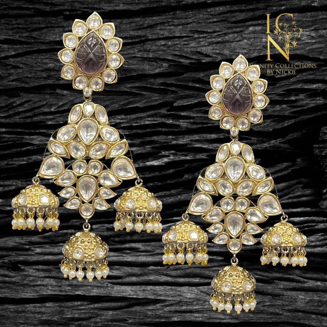 These gold polished earrings provide a modern enhancement to any ensemble. Crafted with modern polki and shimmering cubic zirconia, these earrings will surely attract attention.