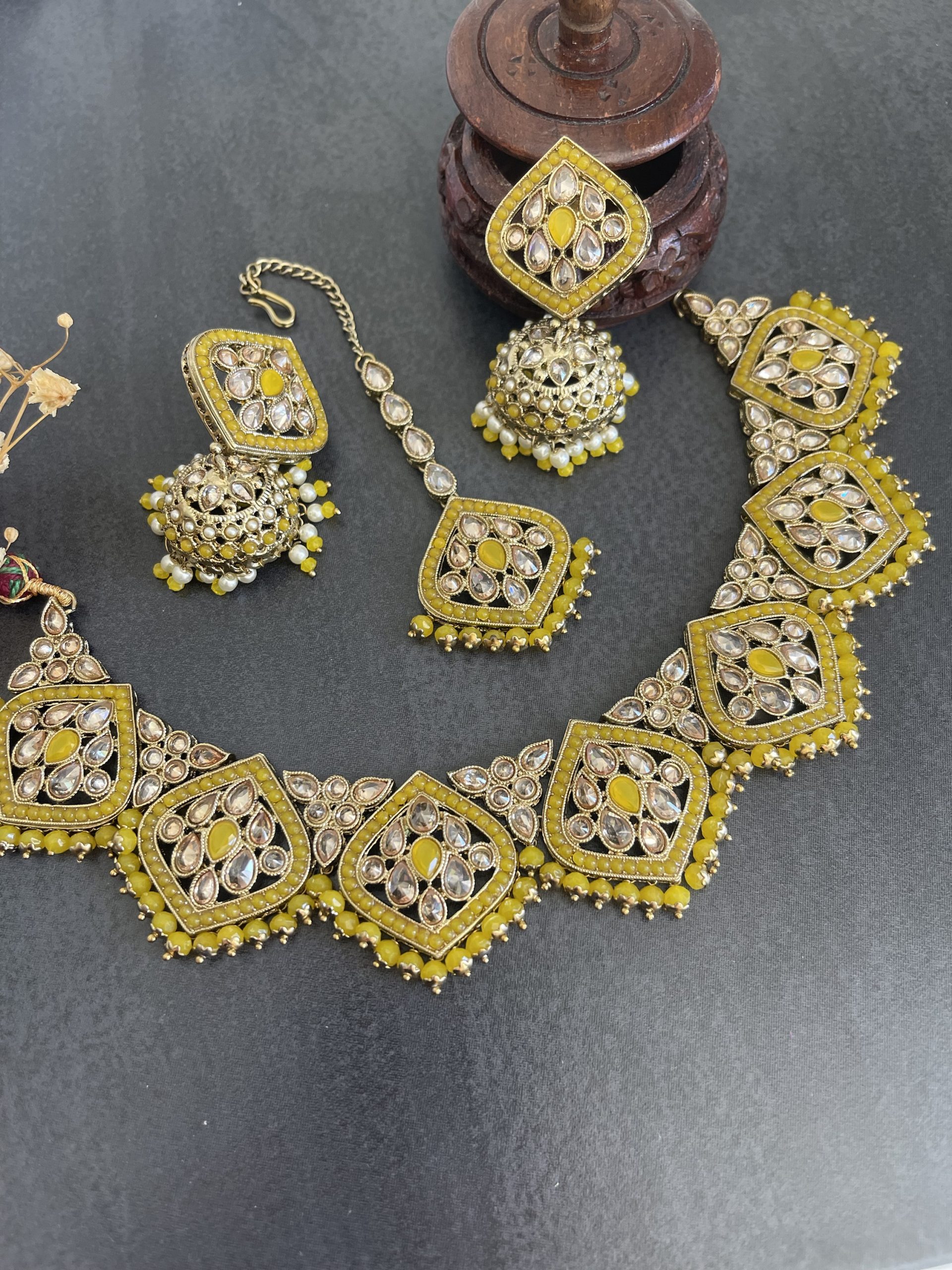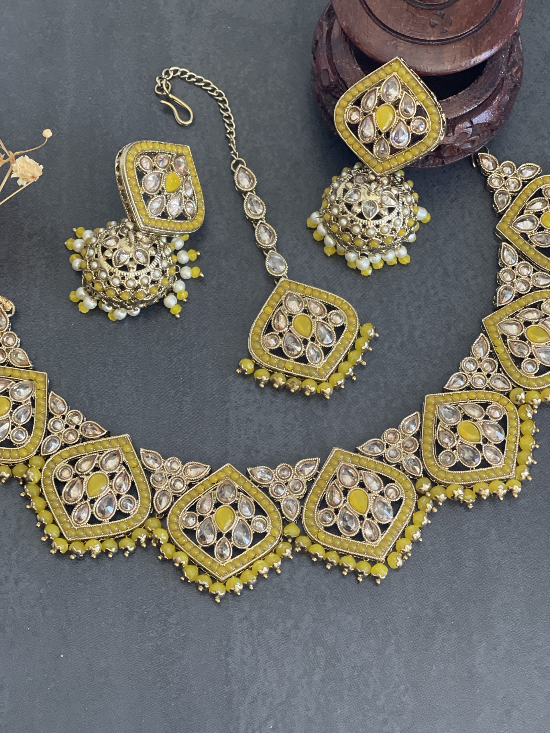 Reverse Polki Necklace set – Yellow